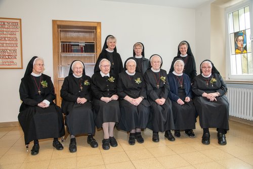 So durften wir mit Sr. Maria Klara Kauke, Sr. Waltraud Röhrle, Sr. Petra Hillebrand, Sr. Gerharda Maubach, Sr. Maria Magda Schmidt und Sr. Ottilie Kautenburger ihr 65-jähriges Professjubiläum begehen. Sr. Ansvera Rohbra schaute auf 60 Professjahre zurück.